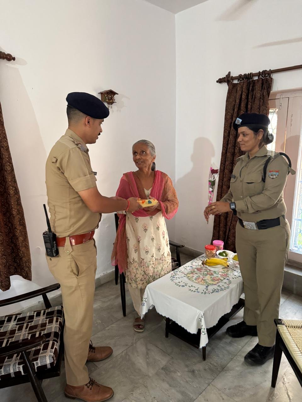 एसएसपी देहरादून के निर्देशों पर दून पुलिस ने इस पहल को अमली जामा पहनाया। पुलिस कर्मियों ने बुजुर्गों के घर जाकर उनसे मुलाकात की और उन्हें दीपावली की शुभकामनाएं दीं। इस दौरान पुलिस कर्मियों ने बुजुर्गों से उनकी कुशलक्षेम भी पूछी और सुख-दुख में उनके साथ होने का एहसास दिलाया।